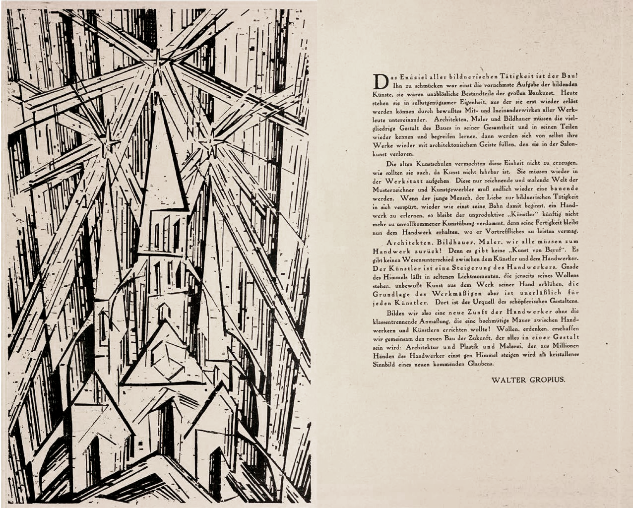 Manifesto Bauhaus, de 1919, com a gravura Zukunftskathedrale – em português, a Catedral do Futuro – de Lyonel Feininger (Foto: Reprodução)