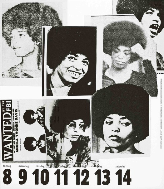 Seu projeto de calendário Mart.Spruijt 1972/73 exemplifica bem essa atitude. Imagens de fontes diversas compõem as páginas semanais, a princípio sem muita coerência, mas de acordo com algumas categorias: homens e mulheres comuns; casais e filhos; mulheres glamorosas na mídia; Jeanne Moreau; pin-ups; modelos de cabelo; modelos de roupa íntima; celebridades; políticos; clérigos; multidões; manifestantes e soldados; atrocidades; e Angela Davis16. A organização é arbitrária e não há texto explicativo. O resultado é desconcertante e talvez incômodo demais para um ambiente doméstico. Van Toorn quer levar a pensar e, para tanto, aposta em “uma tensão perceptível entre a representação habitual da realidade e a intervenção subjetiva”17. Ou seja: expõe a manufatura da comunicação e expõe a si mesmo como manipulador dos meios de comunicação. Contudo, a despeito da importância histórica do projeto, o sucesso dessa estratégia continua a ser uma incógnita. Como afirma Poynor: “O conceito de design reflexivo de Van Toorn deposita muita fé na vontade e na capacidade das pessoas de interpretar sinais gráficos complexos que, na prática, podem confundi-las ou ser ignorados”18.