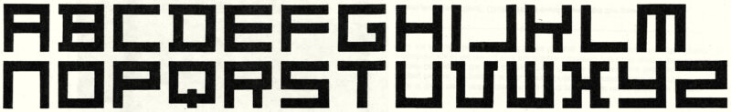Ele tem um lastro histórico e passagem pela Holanda. O New Alphabet apoia-se nos trabalhos de vanguarda a partir dos anos 1910, principalmente do grupo De Stijl liderado por Piet Mondrian e Theo van Doesburg. Basta retornar ao desenho tipográfico de Van Doesburg de 1919 para reconhecer a lógica geométrica e modular e o papel secundário relegado às questões de legibilidade5.
